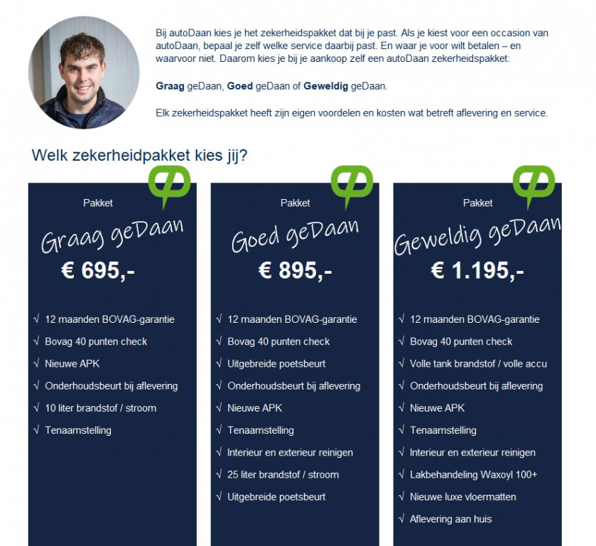 Interesse of een proefrit aanvragenautoDaan afleverpakketten