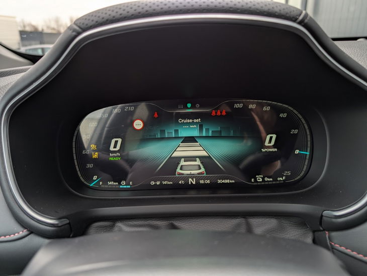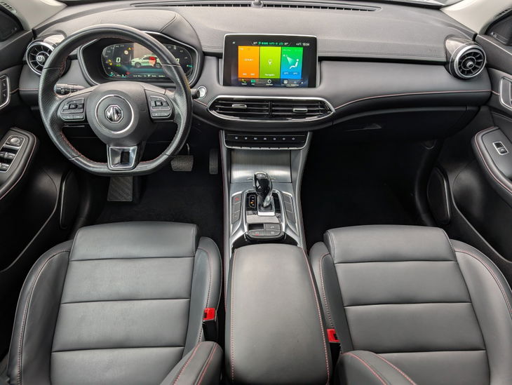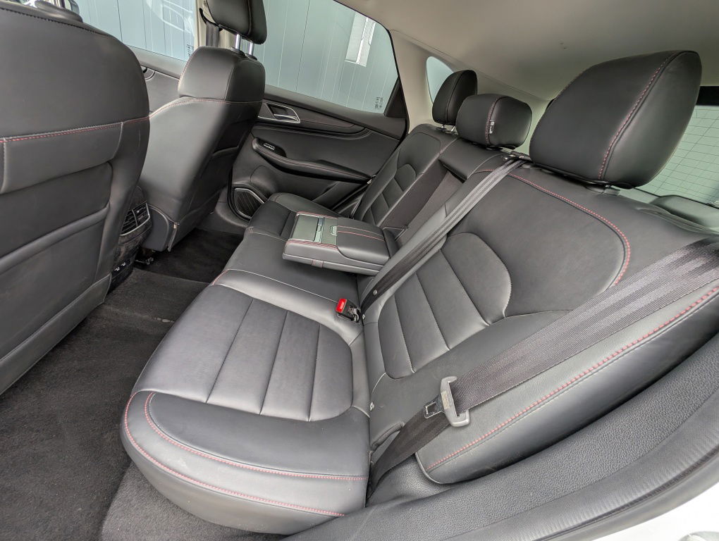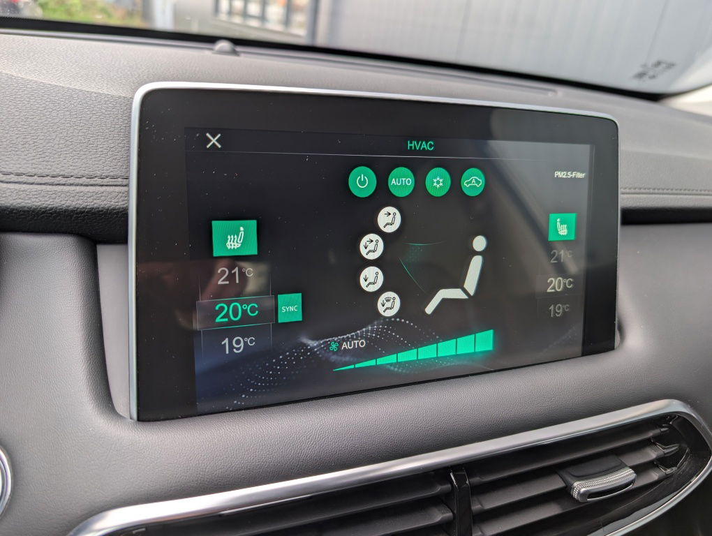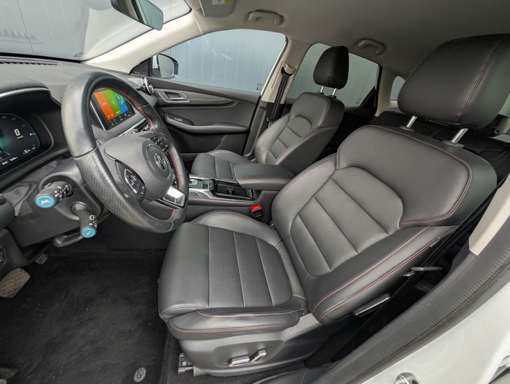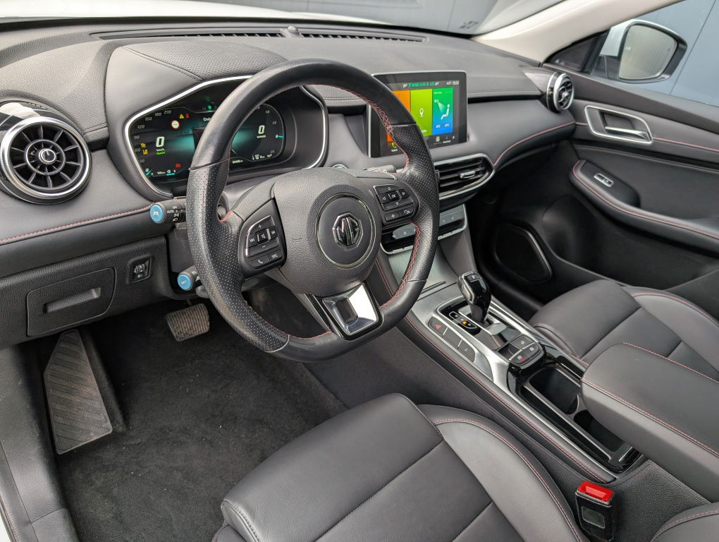 Binnenin verwelkomt de MG EHS je met een prettig ruimtelijk gevoel. De stoelen bieden veel steun en het grote infotainmentscherm zorgt voor overzicht bij navigatie, media en voertuigfuncties. Dankzij de hybride aandrijving en de goede geluidsisolatie blijft het in de cabine opvallend stil, wat een ontspannen rijervaring oplevert.
